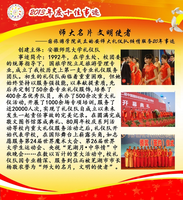 9、师大名片谱春秋,知礼行范显风尚——国旅学院二十年礼仪服务活动事迹(创建主体:安徽师范大学礼仪队)