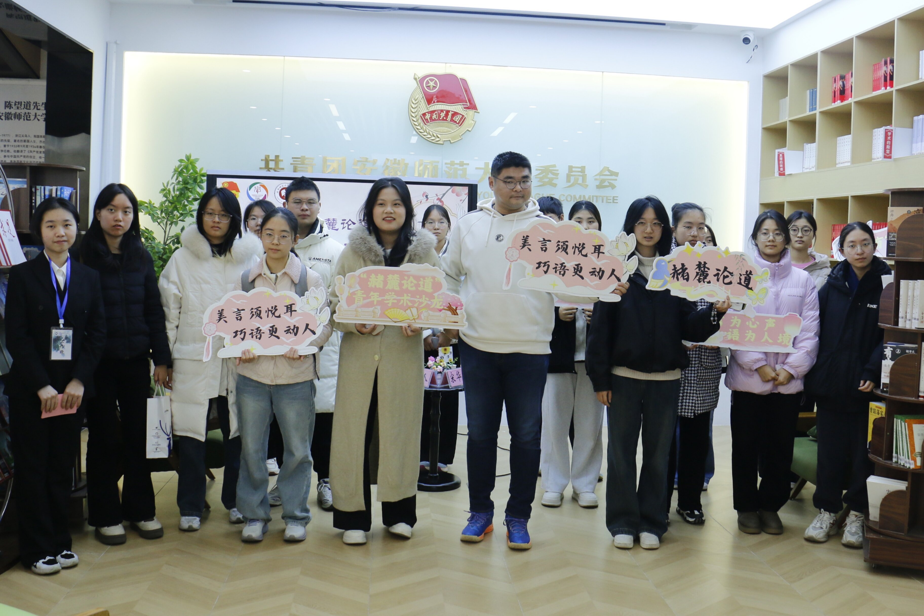 12月17日,由安徽师范大学学生会主办,安徽师范大学文学院学生会承办的第四期“赭麓论道”青年学术沙龙在花津校区大学生活动中心望道书屋顺利举行。本次活动以“言之有术:从经典影视中解析语言艺术与沟通进阶”为主题,邀请文学院宋华强老师担任主讲老师,与同学们进行一场语言艺术的交流。